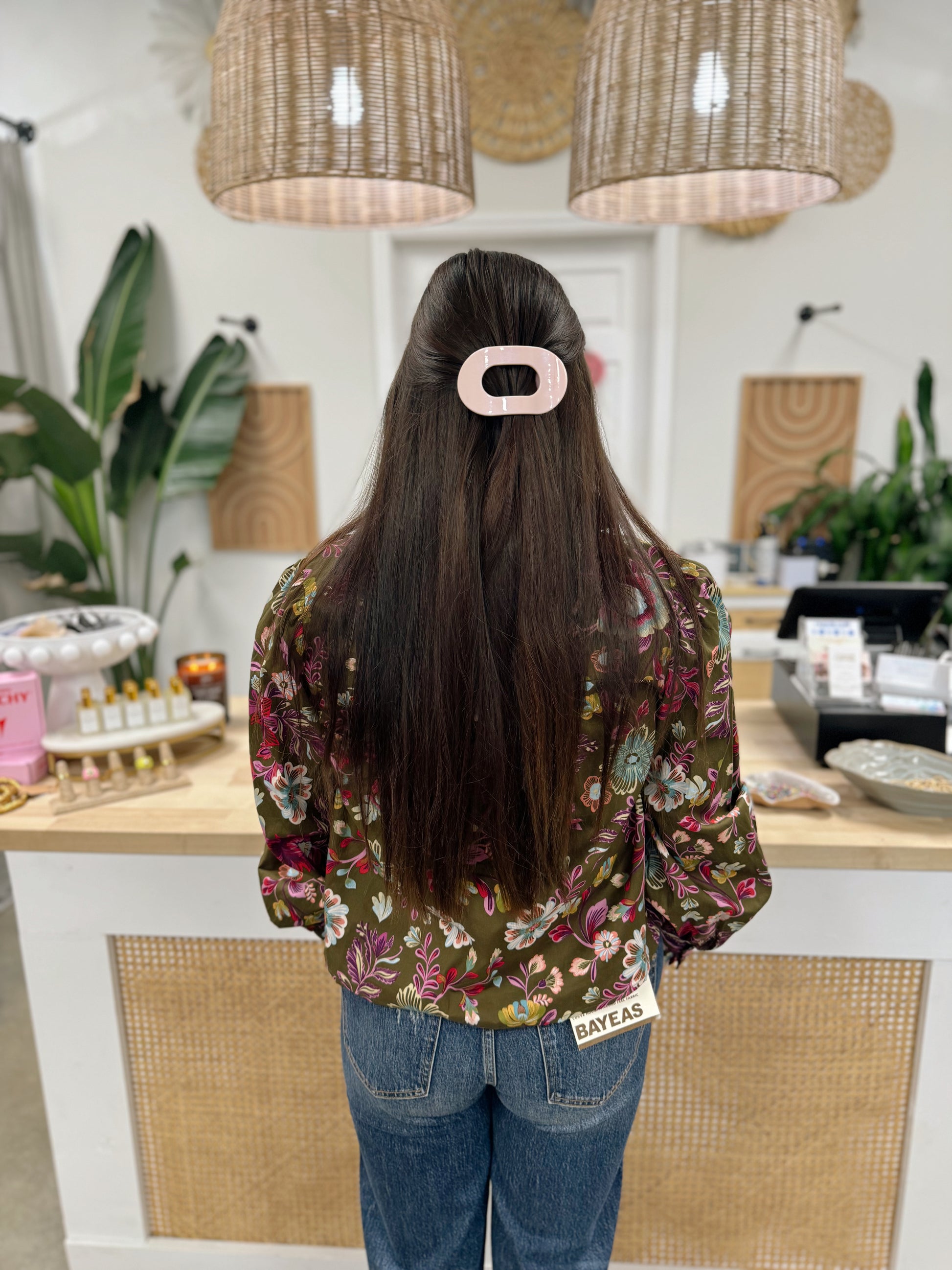 + Floral print ruffled button down top + &merci exclusive print + High ruffled neckline + Button down placket with ruffle trim + Relaxed silhouette + Long puff sleeves with ruffled buttoned cuffs +