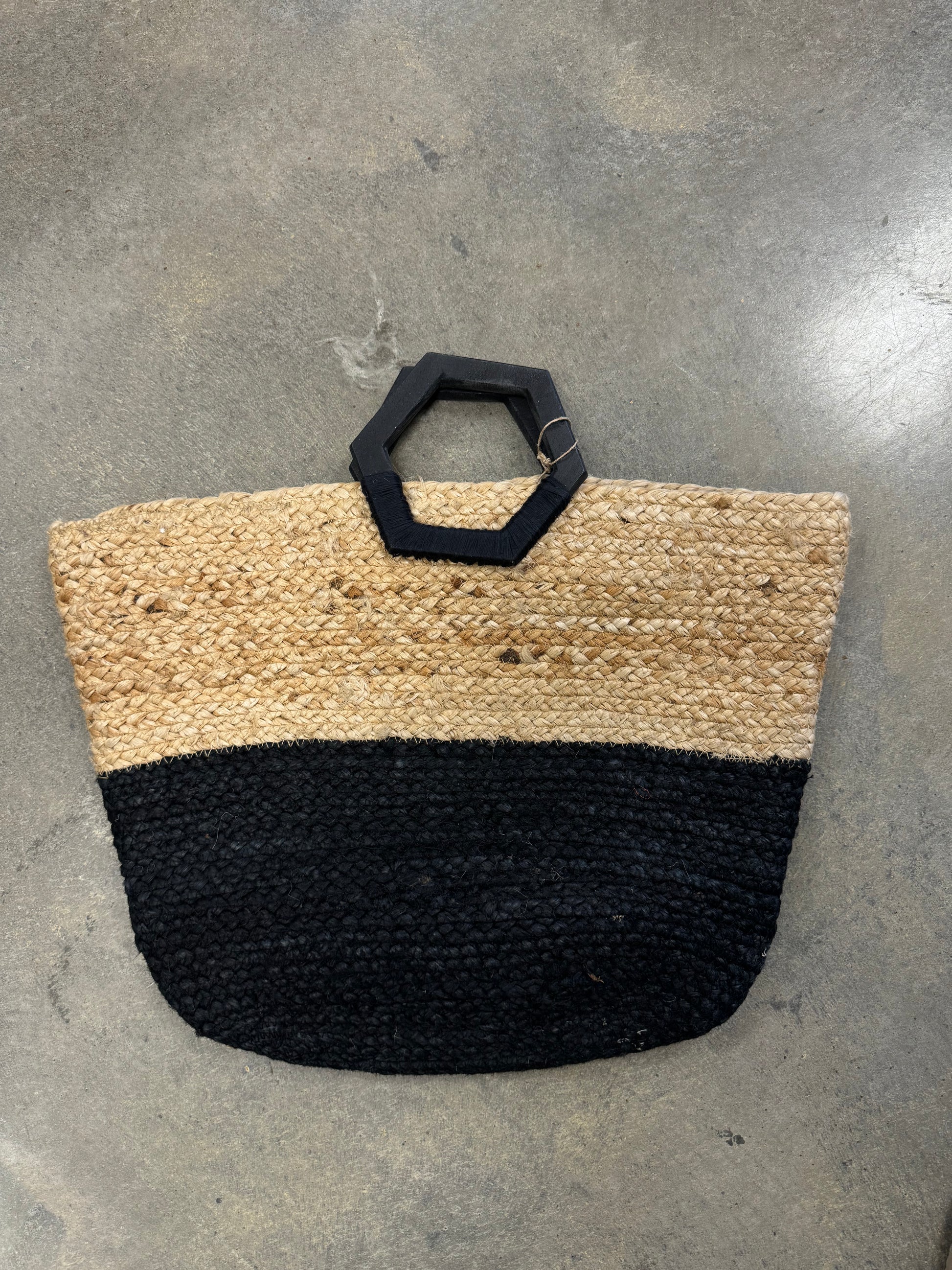 Florence Hand Bag - Natural/Black Jute Bag with Wood Handle