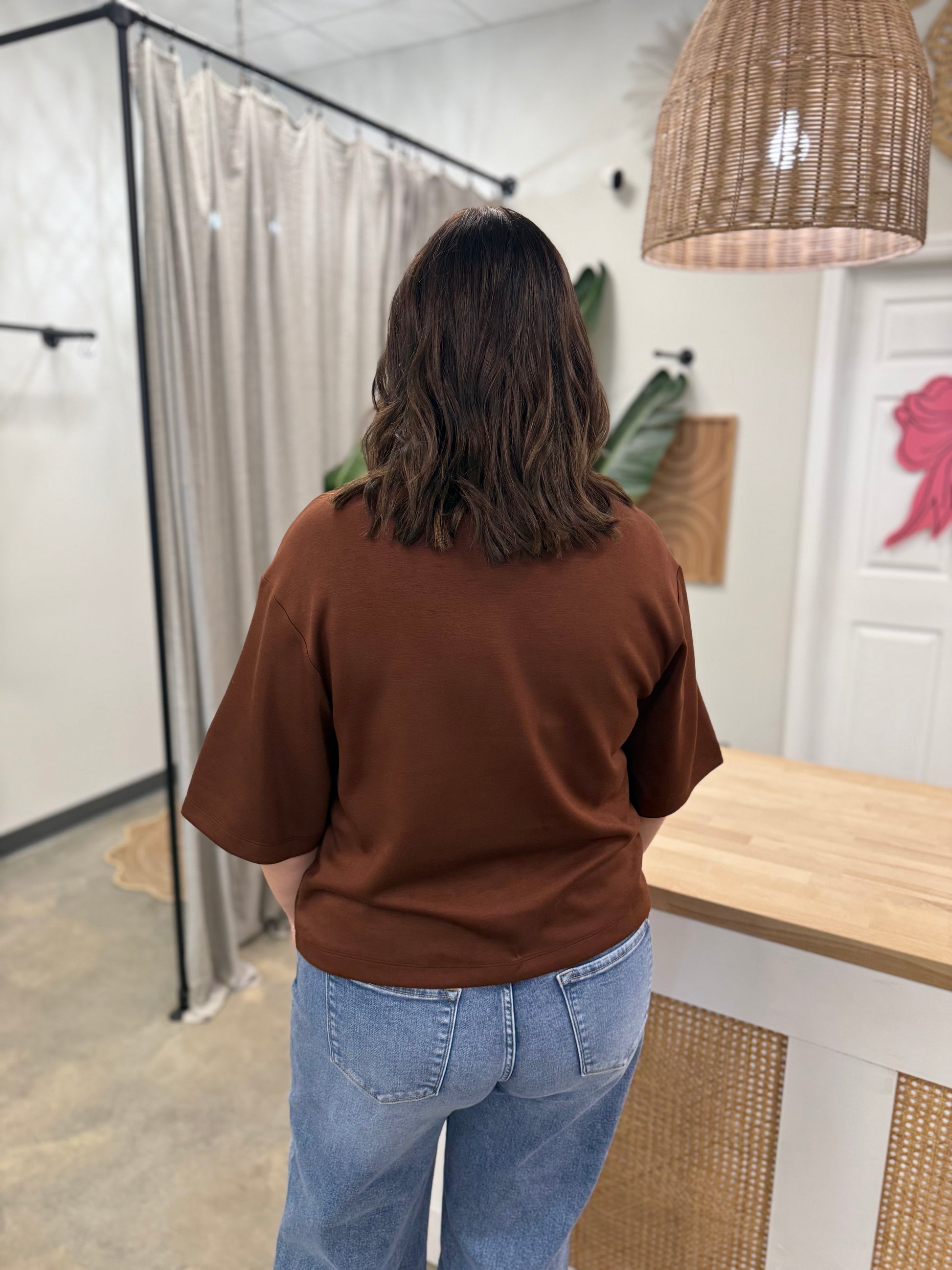 Scuba Drop Shoulder Everyday Basic Top Brown