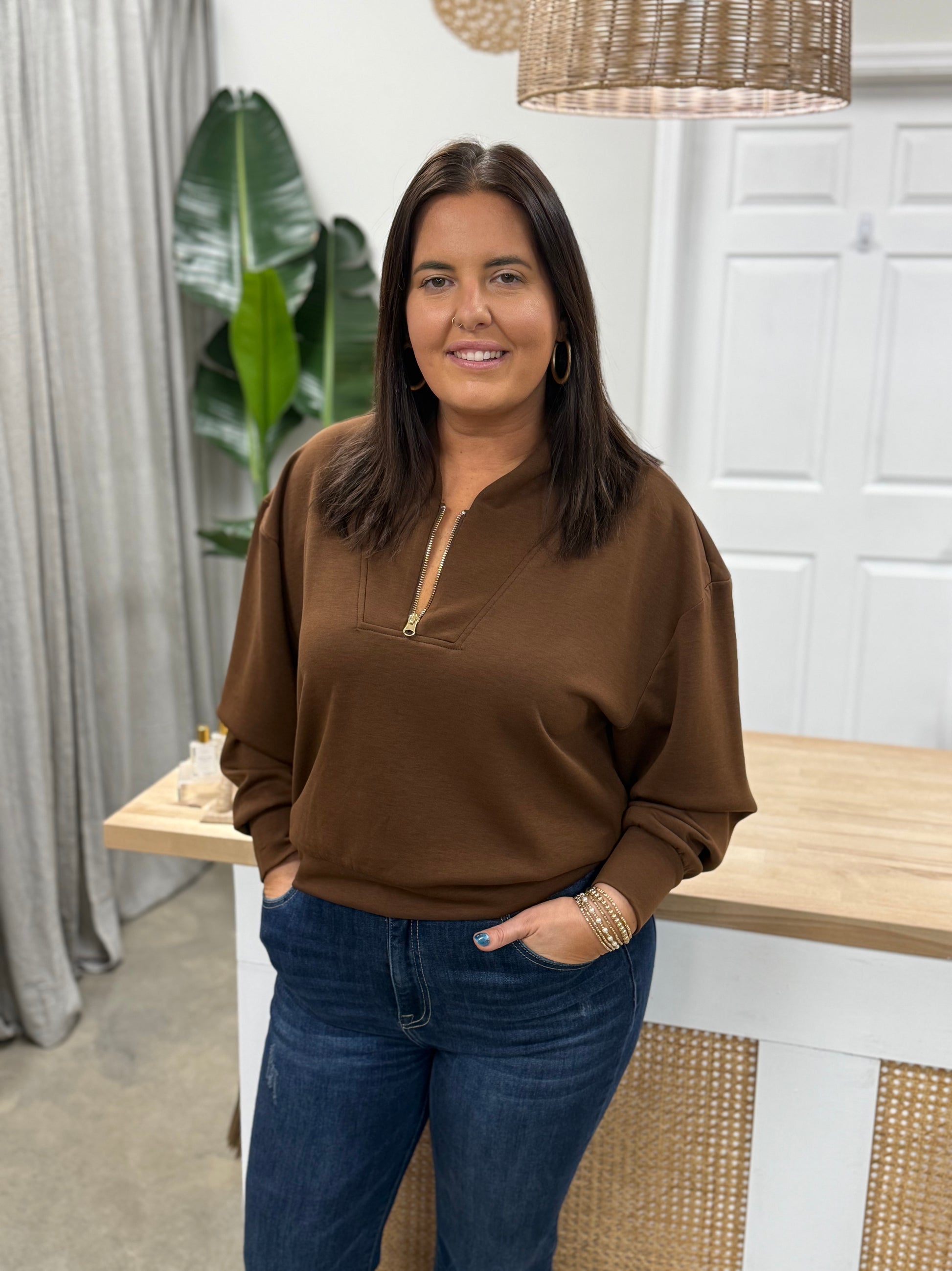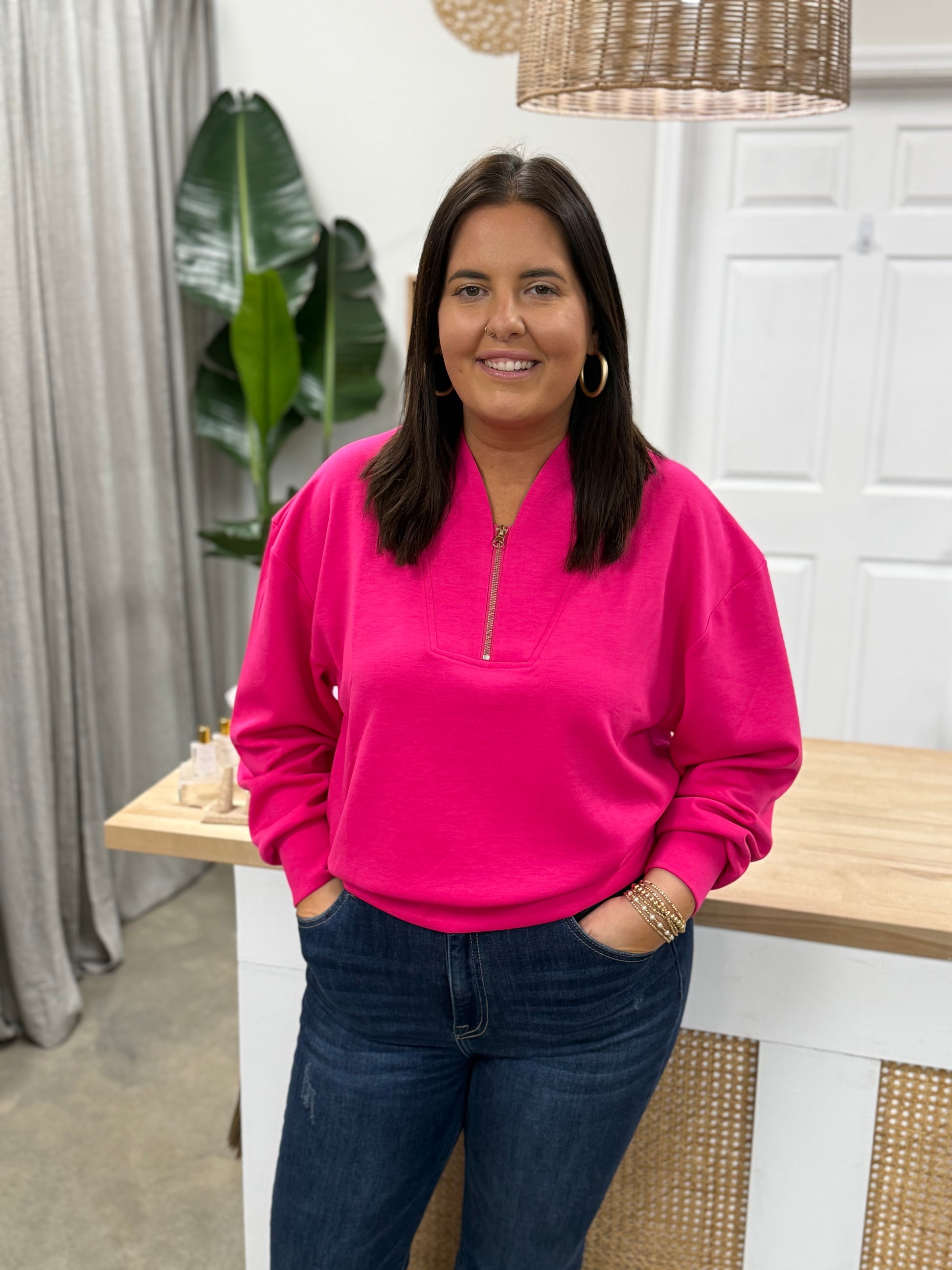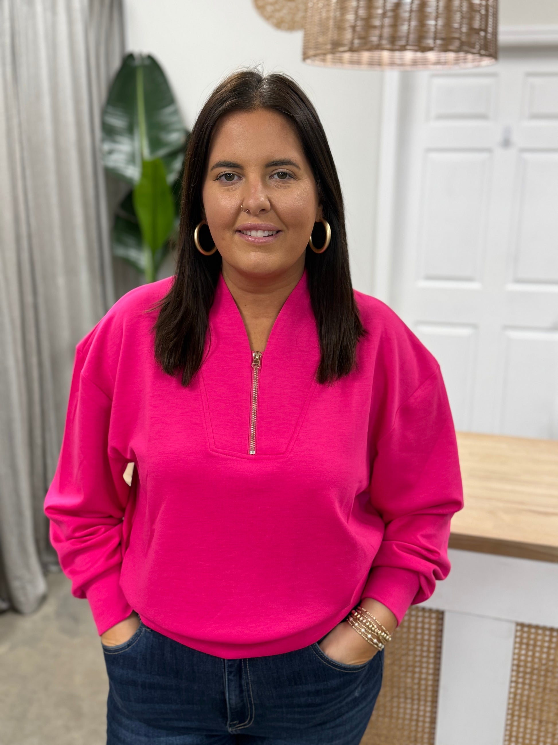 SCUBA HALF ZIP PULLOVER -SOFT AND STRETCH TOTAL BODY LENGTH: 23", BUST: 45.5" approx. - MEASURED FROM SMALL Fabric Contents