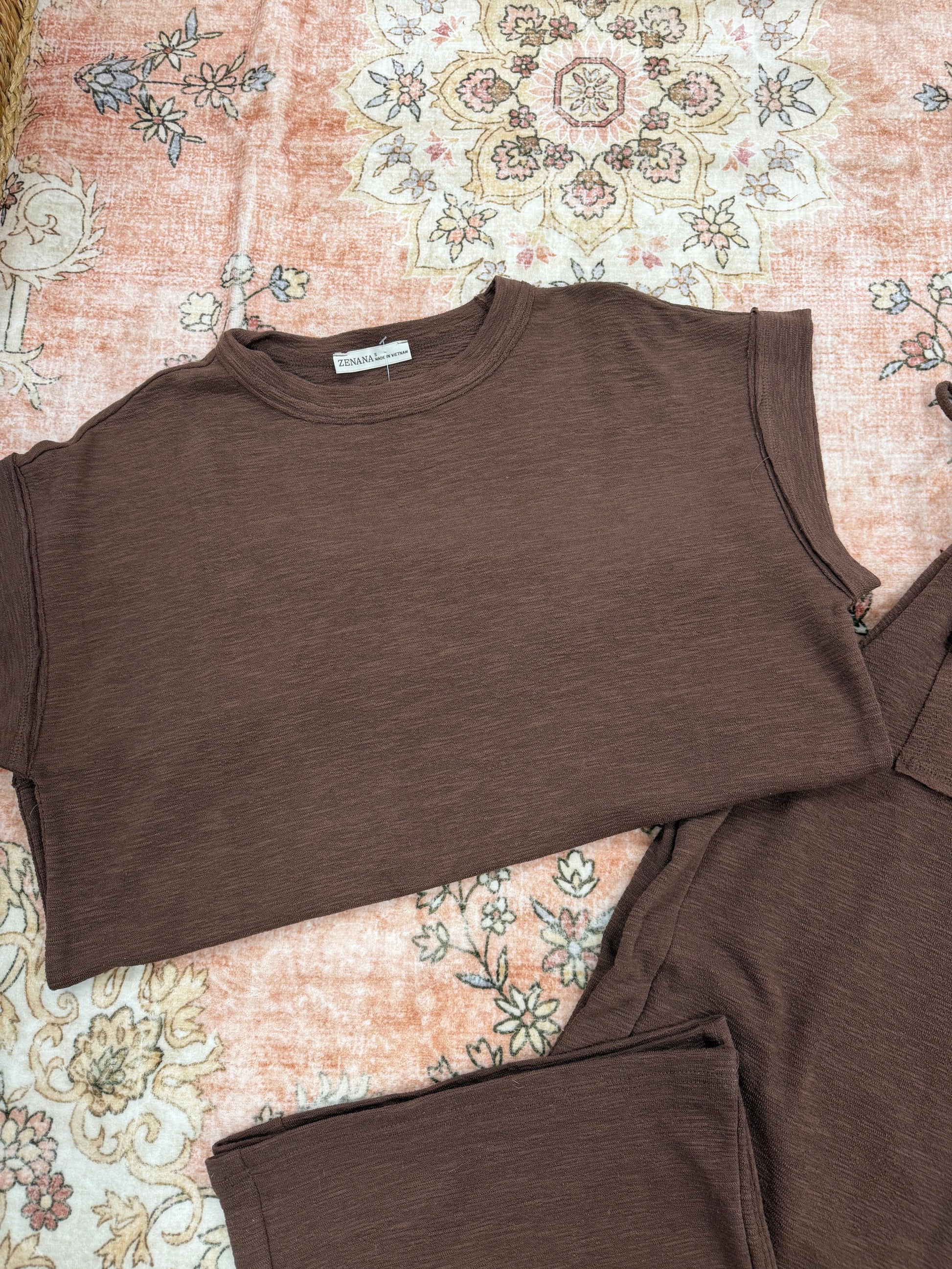 COTTON SLUB SHORT SLEEVE TEE & LONG PANTS SET