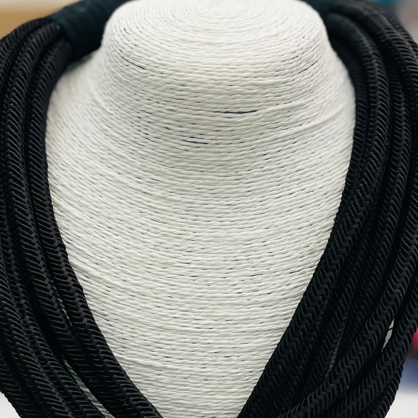The only necklace for any season. Necks will be cool and comfortable in this showstopper. 24-inches long with 8-strands of cotton roping. Easy ball-n-eye closure. Exclusive 242South Design.