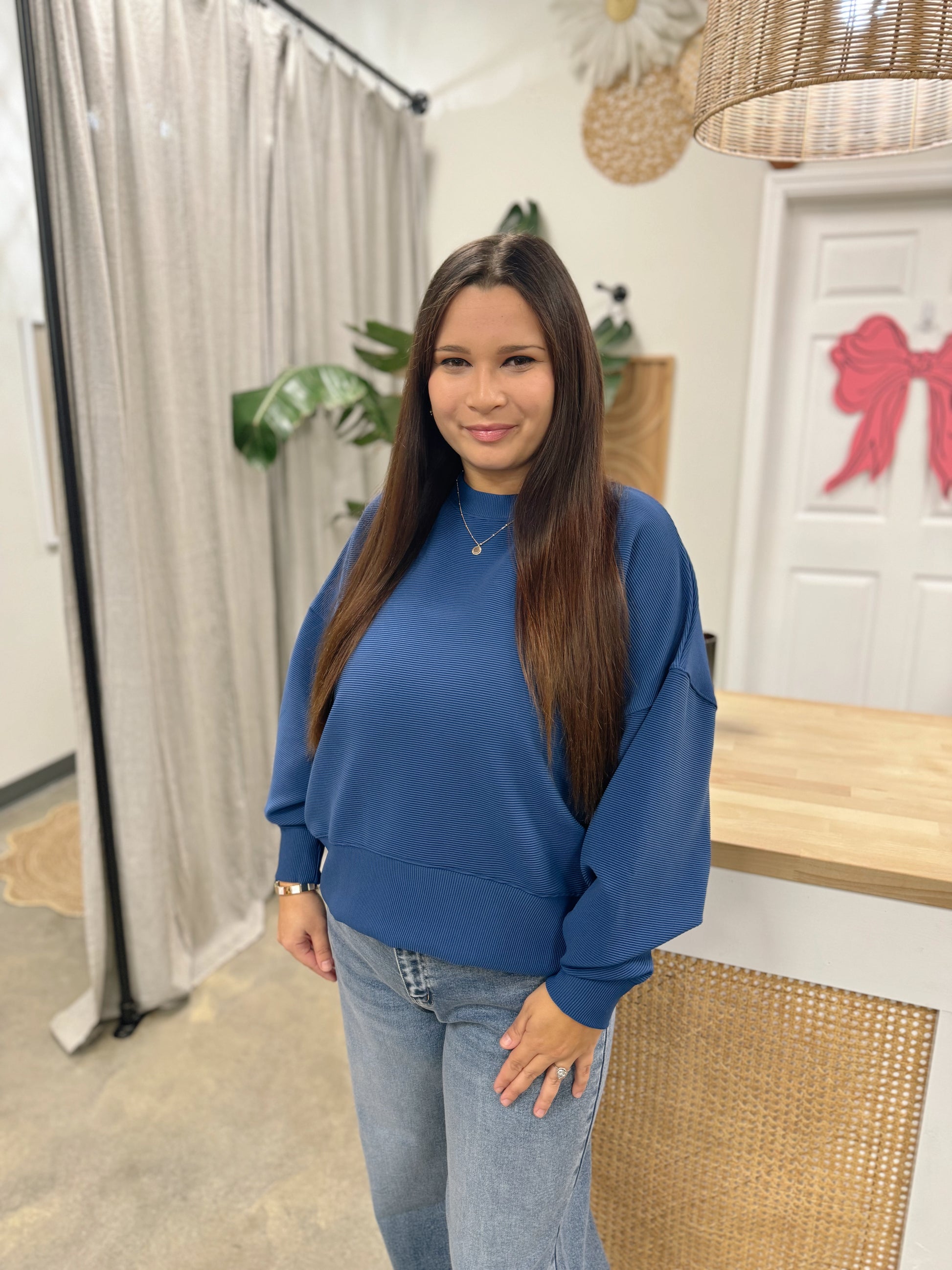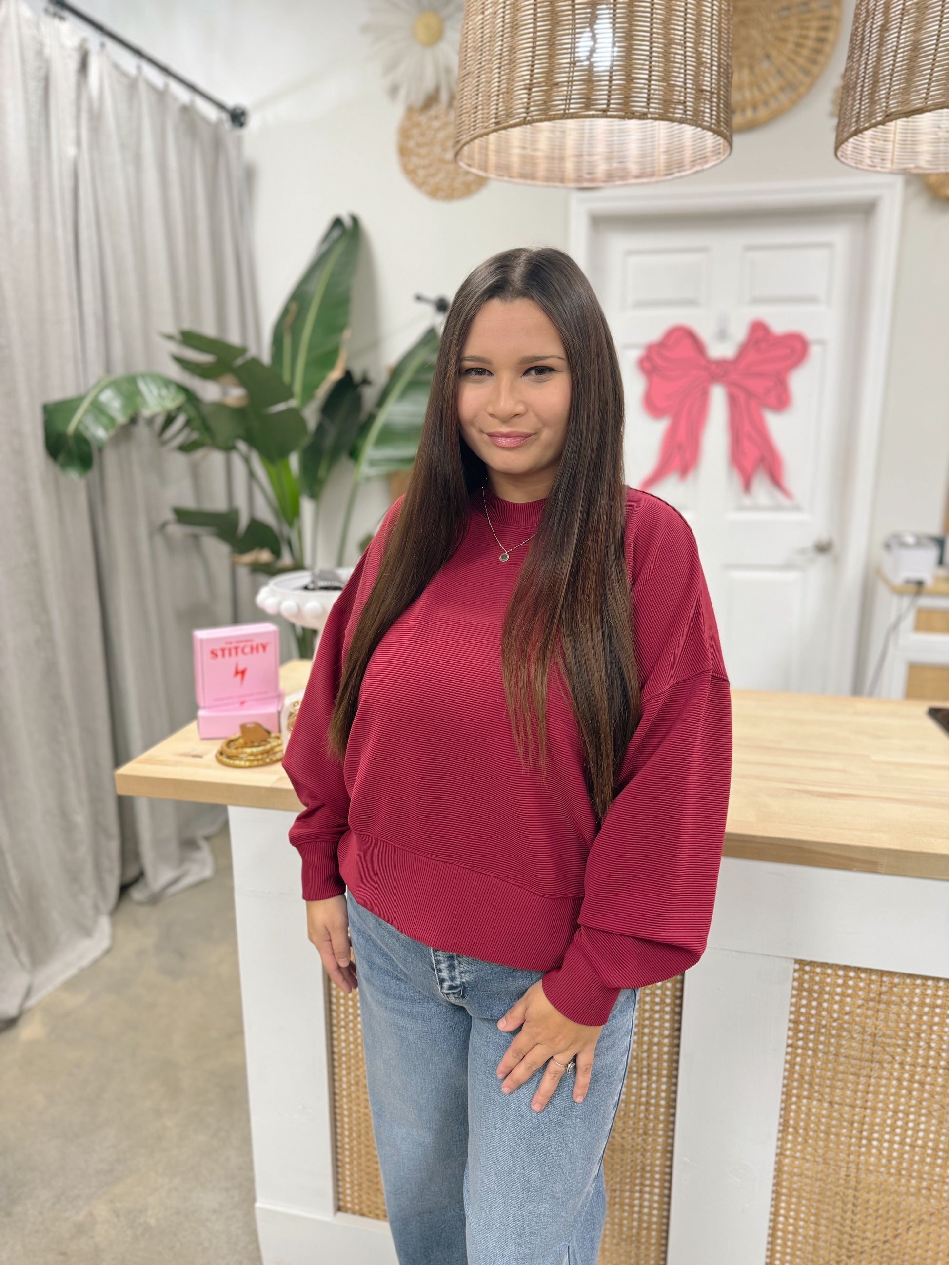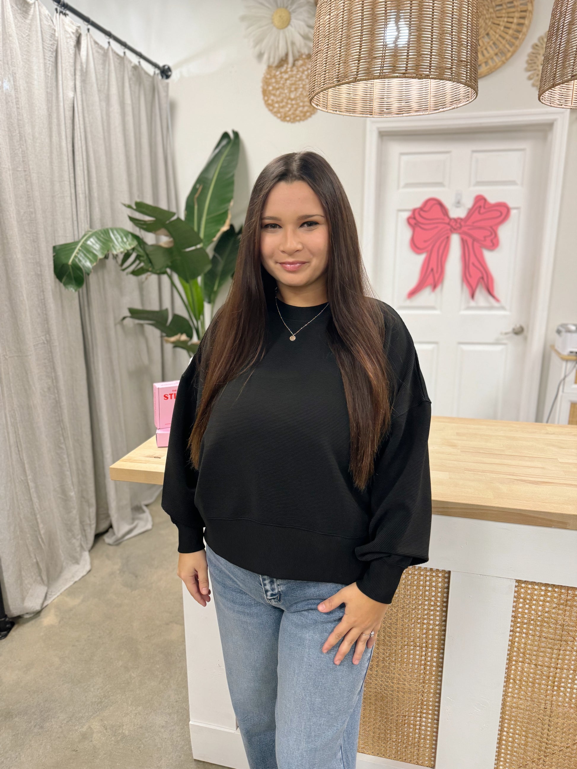 RIBBED BALLOON SLEEVE PULLOVER -GOOD QUALITY RIBBED KNIT