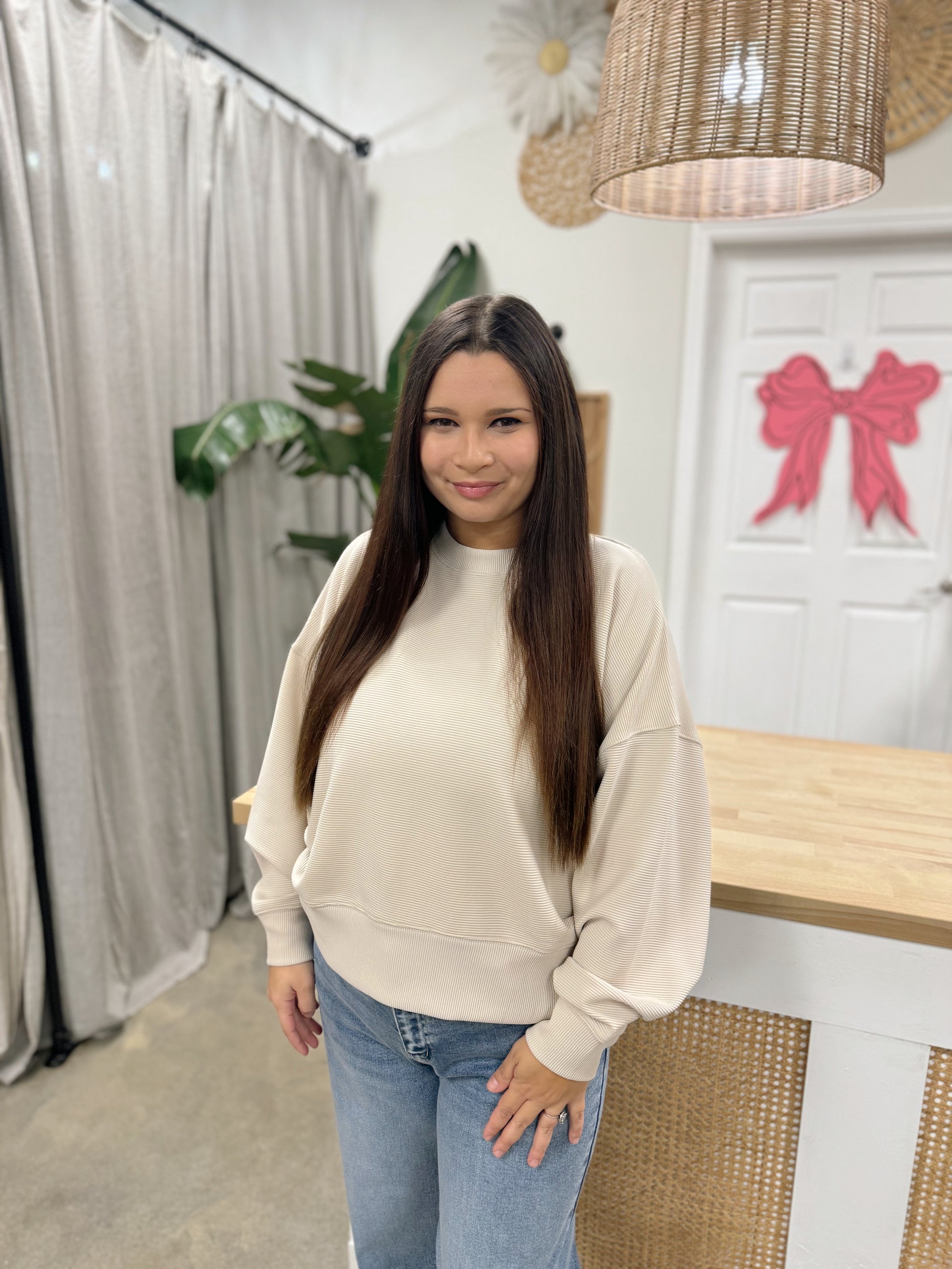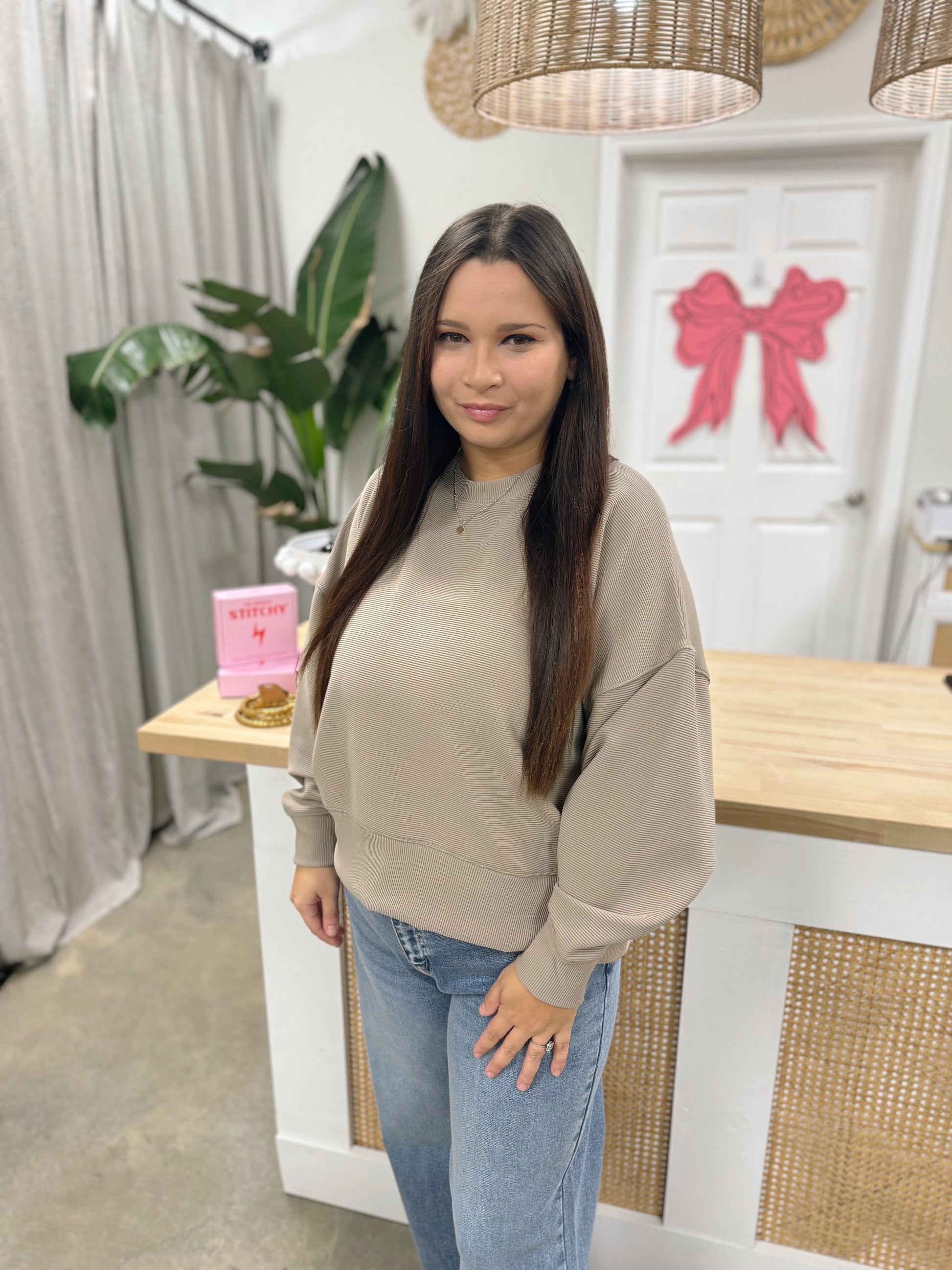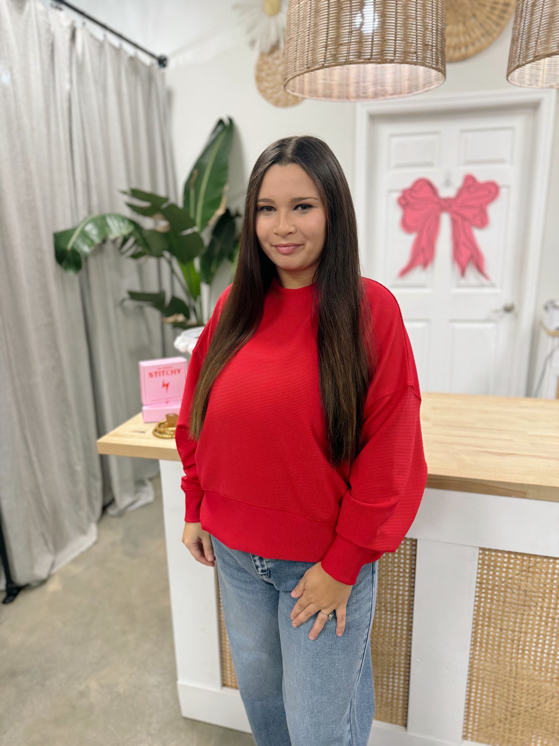 RIBBED BALLOON SLEEVE PULLOVER -GOOD QUALITY RIBBED KNIT